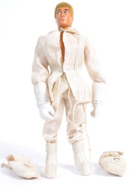 An original vintage 1970's (1971) Palitoy made Action Man ' The Royal Marines Mountain and Arctic ' action figure. With uniform - comprising: boots, trousers, snow suit top, two pouch bags and hard gloves. Head loose. Rare