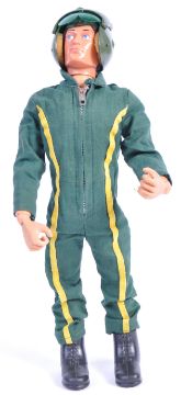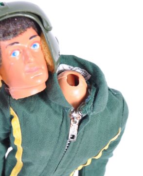An original vintage 1980's (1981) Palitoy made Action Man ' Helicopter Pilot ' action figure. With uniform - comprising: flight suit, short boots, and helmet with slide down goggles. Head loose. Rare