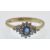 A hallmarked 9ct gold  sapphire and diamond cluster ring. The ring set with an oval mixd cut sapphire framed by a marquise shaped cluster of diamonds. Size P. Weight 2.3g.