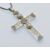 A French 18ct  white gold diamond and pearl pendant necklace. The necklace strung with a white and yellow gold openwork crucifix cross having diamond set finials with central diamond clusters, flanked by half pearls . The pendant strung upon a white gold box chain having extra safety chain.  French assay mark to chain and bale of pendant. Weight 14.2g. Measures chain 18 inches, pendant drop 2.2inches.