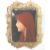 A 19th Victorian hand painted miniature of a hooded lady in the form of a brooch edged with filigree decoration. Measures 5cm long.
