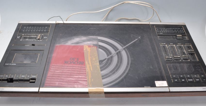 A Bang & Olufsen B&O Beocenter 2002 record deck and cassette music player.