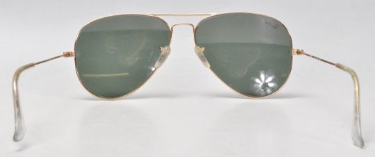 A pair of  USA made Rayban gold tone Aviator sunglasses with leather case.