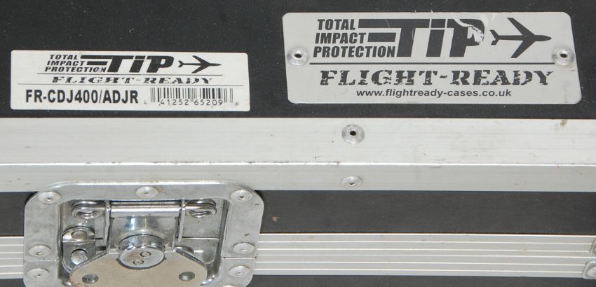 A group of five music equipment flight cases with some bearing makes plaques to include Total Impact Protection, Flight-Ready, Citronic etc. Part of a collection of ex DJ equipment.