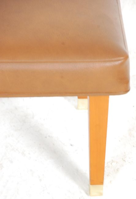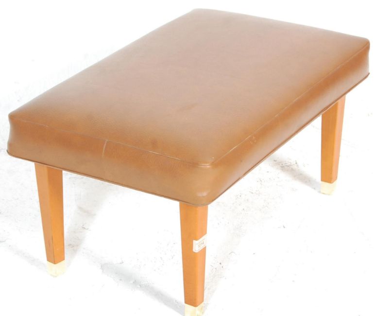 A retro 20th Century foot stool raised on square tapering legs having brass caps supporting a rectangular brown rexsine top. Measures 32x65x30cm.