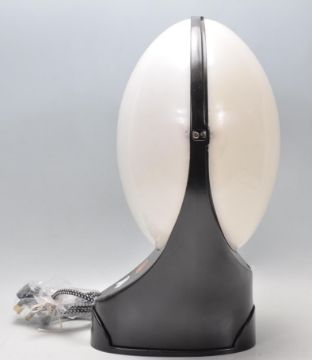 A mid 20th Century Art Deco style wall light converted into a table lamp having an opaline perspex diffuser in two halves forming an egg shape on a black metal shaped base. Measures; 41cm tall.