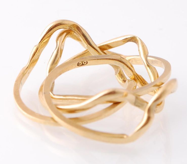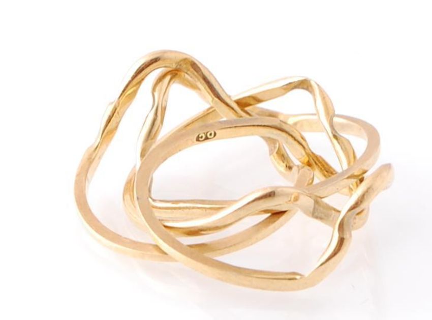A 9ct gold hallmarked 4 part puzzle ring with serpentine drop form being stamped to each ring. Total weight 3.6g / Size G.5