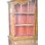 A fantastic antique Queen Anne Revival walnut vitrine display cabinet / bookcase on stand having an arched pediment to with within glazed doors opening to reveal a painted shelved interior. Raised on a matching drawer base with brass armorial backplate handles. Raised on tapered faceted column supports with bun feet. Measures: 212cm x 174cm x 37cm.