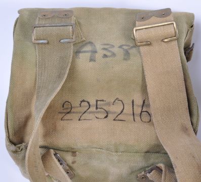 A collection of assorted WWII Second World War British Army uniform items and equipment. The collection comprises of a Wiltshire regiment kit bag belonging to a Corporal Bush, an M.E Co webbing pack dated 1941 with broad arrow mark to the strap, two Bren gun ammo pouches, an M.E Co entrenching tool dated 1943, an MK1 Sheffield Steel Productions 1944 spike Bayonet and a ' Light Respirator / Gas mask and eye shields ' within original case. A good collection of WWII military items.