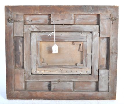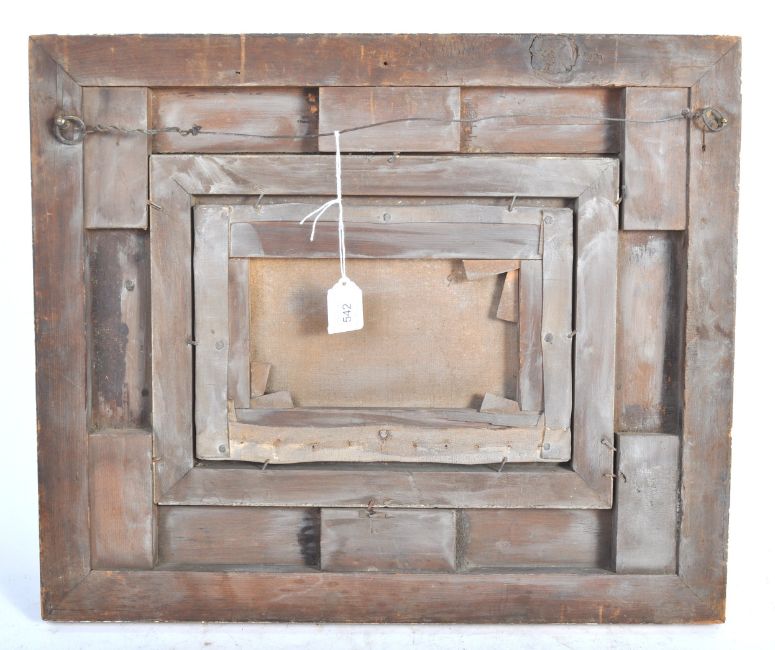 Henry Simpson (British. 1853-1921) (attributed to) - a 19th century Victorian oil on canvas painting depicting a small sailing boat in rough seas. To the background are several distant ships, with a small ray of sunshine breaking through the clouds. Signed indistinctly to the corner in red. Framed in a period gilt and plaster decorative frame. Total size approx; 41cm x 48cm.
