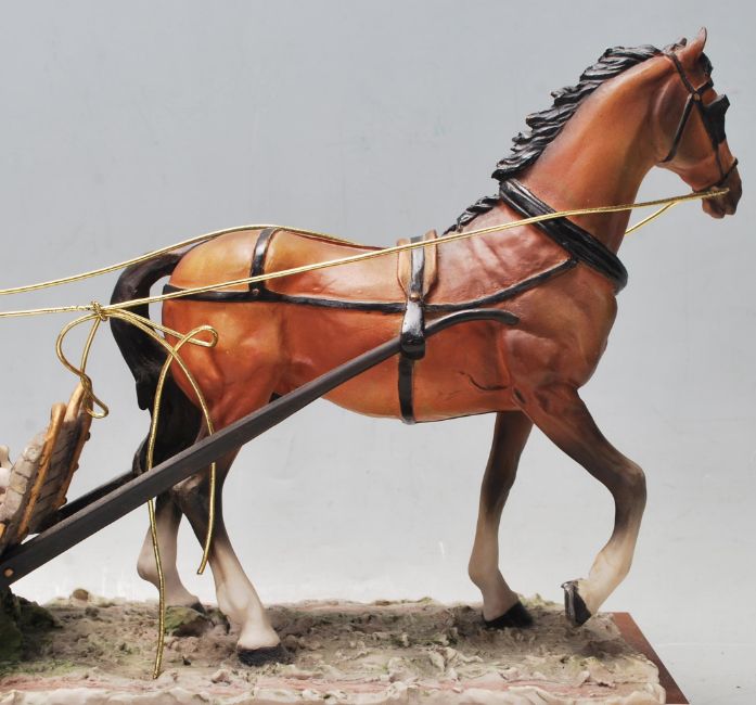 Auro Belcari - An original china figurine of a courting couple on a coach and horse set on a wooden plinth base. Signed to the base. Together with two other Belcari lamps.