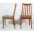 A set of four retro mid 20th Century G plan Fresco range teak framed rail back dining chairs having cream upholstered seat pads. Raised on a tapering supports. Measures 92 cm high  x  49 cm wide  x  44 cm deep.