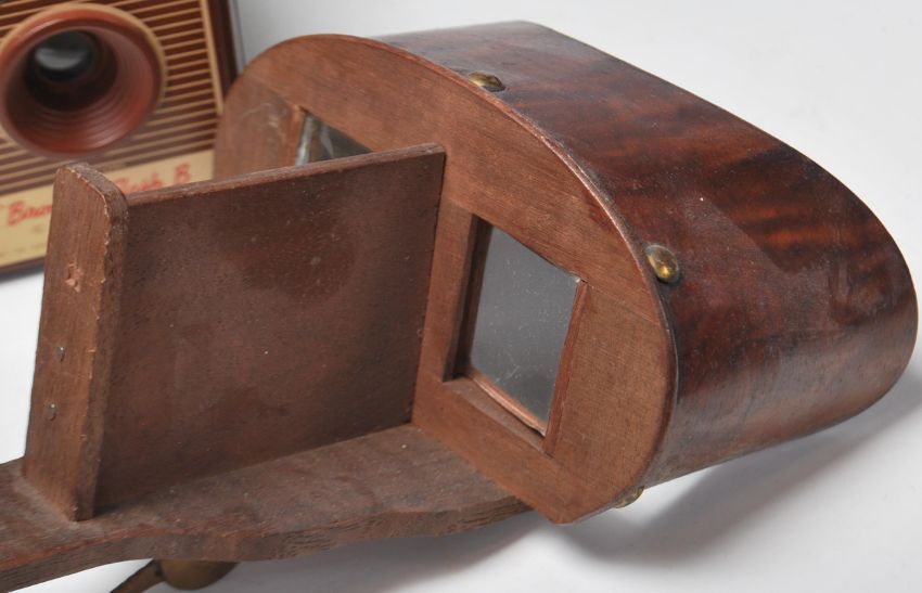 A group of vintage early 20th century photograph cameras to include brown box cameras and  folding photograph cameras together with accessories.