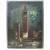 A vintage 20th Century hand painted pocket watch / clock surround board depicting Big Ben and the river Thames with mother of pearl inlay and a pierced hole for the face for a pocket watch.