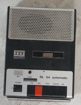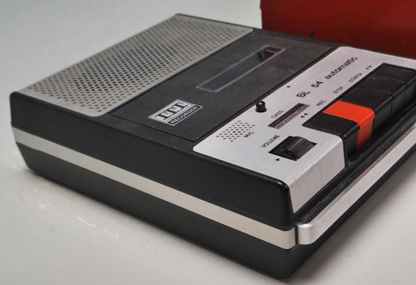 A vintage retro 20th century ITT Recorder SL 54 automatic / tape recorder together with a EKCO valve radio in a red metal case.