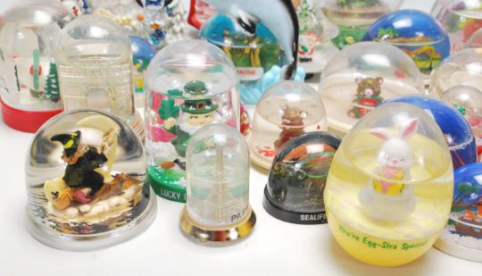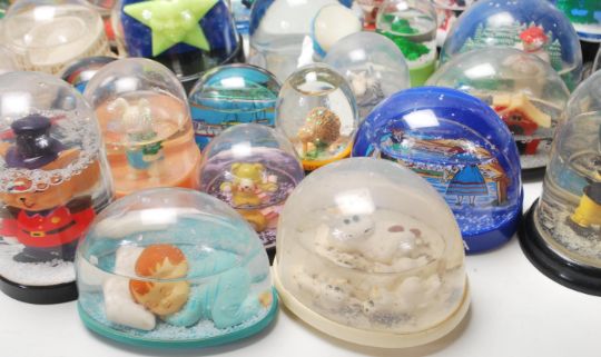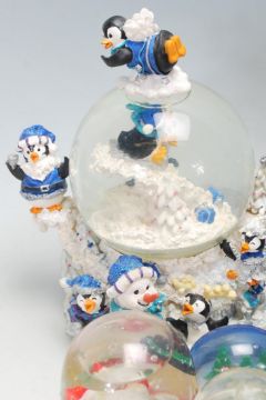 A large collection of original vintage collectable plastic snow globes from around the world to include, Niagra Falls, The Colosseum, New Zealand, Lapland, The Eiffel Tower and many more. Good Collection. Together with a wind up musical Penguin Collectable 100mm water ball. Water ball  plays a Christmas Carol and rotates while music is playing.