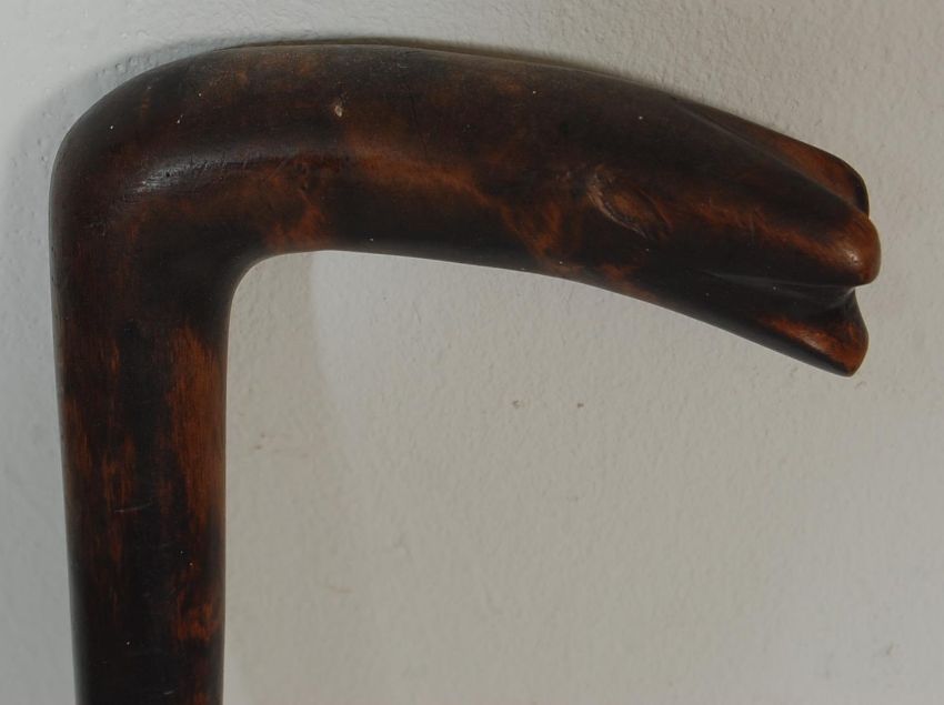 A collection of three late 20th Century wooden walking sticks / canes to include a bone handled walking stick with a barley twist shaft, a wooden walking stick with a carved birds head handle & a blackthorn style walking stick. Largest measures 94 cm
