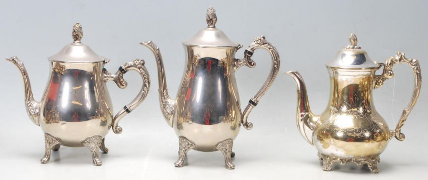A large quantity of silver plated flatware comprising serving try, tea pot, toaster rack, creamer jug and many more.