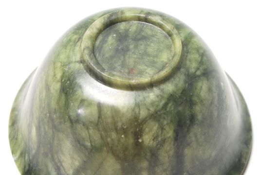 A 20th Century Chinese carved green stone footed bowl of small proportions having a flared rim.