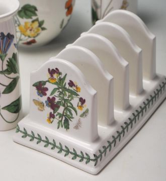 A 20th century Portmeirion botanical garden items to include vase, pot, toast rack, large cup, dish and many more.
