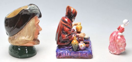 A collection of 20th century Royal Doulton figurines to include Robin Hood D6527, The Potter HN1493,  and Goody Two Shoes HN2037. All stamped to the underside.