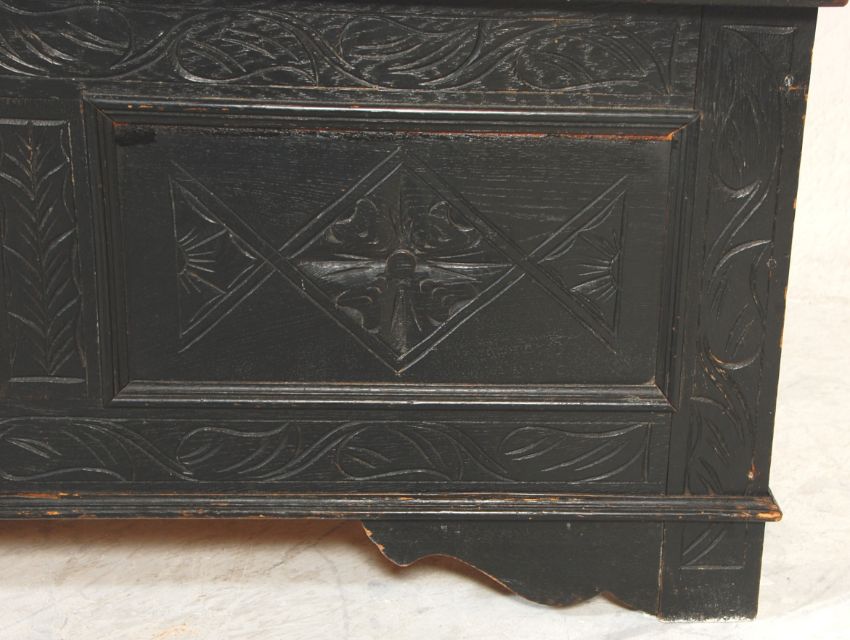 A Victorian 19th century carved oak Jacobean revival monks bench / hall settle. Raised on block leg with carved fielded panels to front and sides, Scrolled elbow rests flanking central hinged seat chest. The back with fold down / up backrests table top.