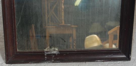 A large Victorian 19th century style shop / haberdashery mirror of rectangular form with mahogany cushion frame. Original back panels in place.