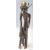 A vintage 20th Century Polynesian / Aboriginal bronze figure of a tribal elder with large earrings seated in contemplation with the staff of authority in his hand.