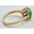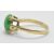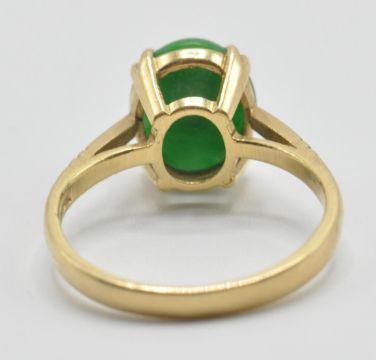 A hallmarked 18ct gold ring being prong set with a oval green jade cabochon and engraved shoulders. Hallmarked Sheffield 1995. Weight 3.6g. Size N.5.