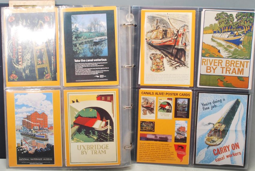 Canals & Inland Waterways - Collection of Special covers, including Silk, Signed Limited Editions, Post Office display board for Canal stamp issue, vintage to modern picture postcards with Barges and Narrow Boats. Interesting lot in three albums