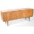 Beautility - A fantastic 20th Century retro vintage teak wood sideboard credenza by Beautility Furniture Company having stylized belt buckle handles throughout. The sideboard with a central fall front cocktail compartment flanked by a single cupboard to the left and a bank of three drawers to the right. Raised on square tapering supports united by single stretchers. Measures 77cm x 184cm x 46cm .