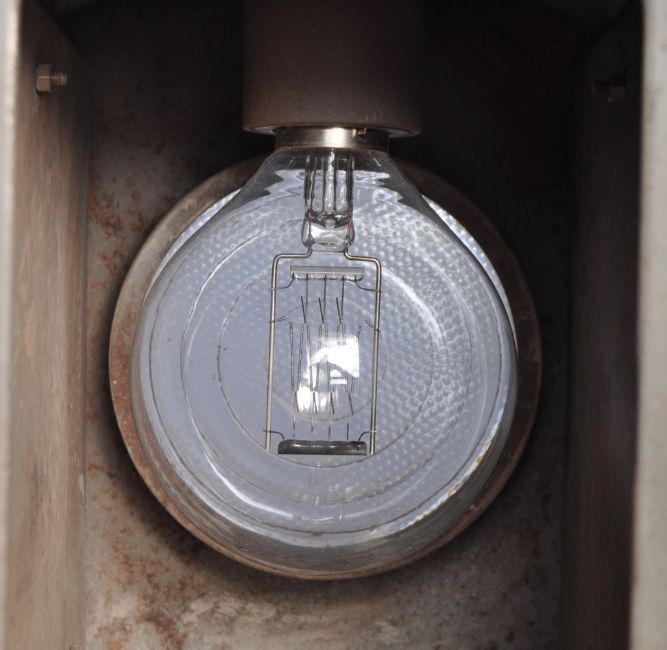 Strand Electric - No.45 - A 20th Century retro vintage industrial studio spotlight / lamp light by Strand Electric number 45. Finished in grey having a textured glass spotlight front with original bracket fixture. Measures 24cm x 16cm x 27cm.