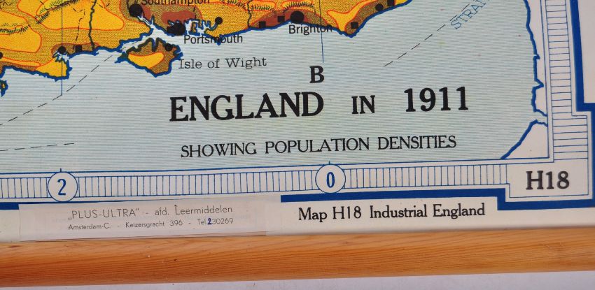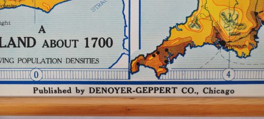 Two vintage 20th century School room / Classroom educational posters. The first being a Dutch poster showing the ' Landing Of Prince William III At Brixham ', by J.W. De Jongh and the second being a map of England from 1700 to 1911, published by Denoyer-Geppert Co, Chicago. Both with wooden mounts to top and bottom. Approx; 76cm x 109cm.