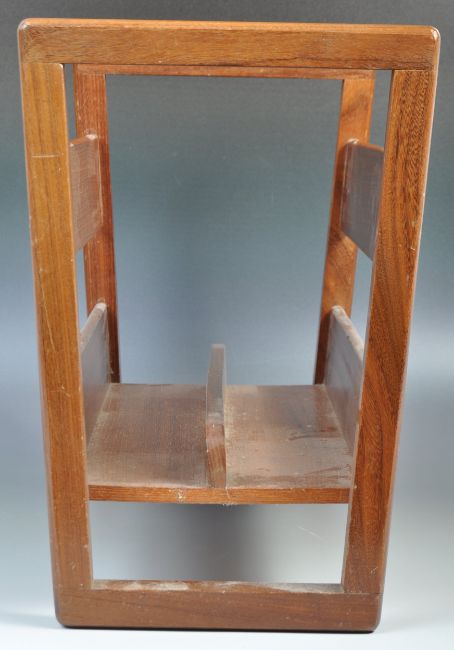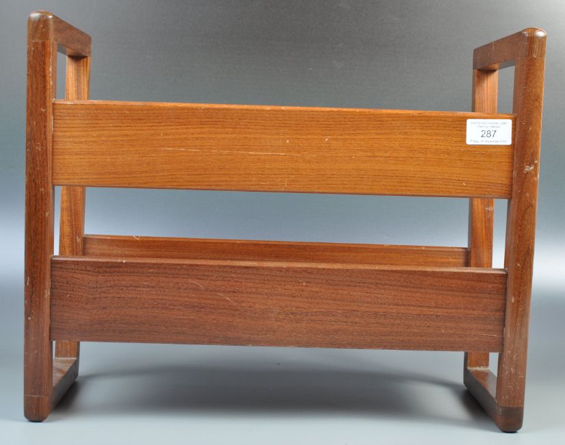 Guy Rogers - A mid 20th Century retro vintage Danish inspired teak wood magazine rack / Canterbury by Guy Rogers. The panelled body having chamfered edges raised on tapering joint supports. Measures 35cm x 43cm x 24cm.
