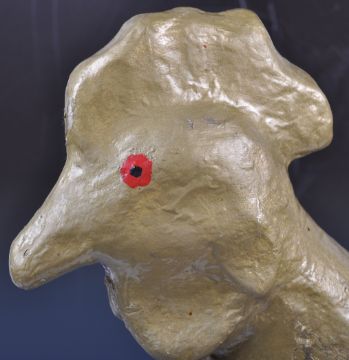 Courage Brewery - A large 20th Century retro vintage breweriana point of sale pub advertising model of a cockerel being constructed of fibreglass. The cockerel painted in gold raised on a black painted pedestal base with gold lettering. Measures 56cm x 47cm.