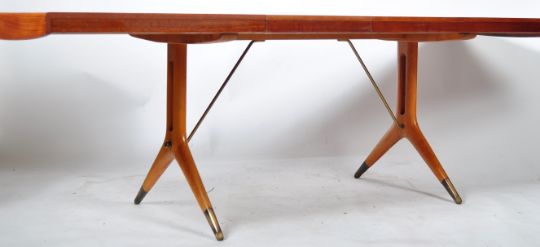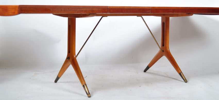 David Rosen - Nordiska Kompaniet - A stunning mid 20th Century 1950's Swedish retro vintage teak and beach wood extending dining table by David Rosen for Nordiska Kompaniet. The designer table of rectangular teak wood construction with rounded ends and having two extending leaves. Raised on stylish splayed beach legs with brass supports and brass cap ends. Marked to underside 'Made in Sweden'. Measures 74cm x 146cm x 236cm.