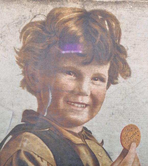 McVitie & Price's - A charming early 20th Century point of sale shop display advertising showcard for McVitie & Price's Digestive Biscuits. The show card depicting a young boy enjoying a digestive sat atop a box of McVitie's. Framed and glazed. Measures 58cm x 47cm.
