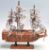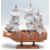 A collection of three scratch built model sailing / fishing ships comprising of a wooden fishing boast painted in red white and blue, a scale copy of the Mayflower ship together with a scale galleon ship. Measures 30 cm tall.