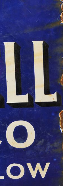 Blue Bell Tobacco - An early 20th century double sided porcelain enamel point of sale shop advertising sign with wall flange for fixing. The sign reads ' Smoke Blue Bell Tobacco Cool & Mellow '. Measures 28 cm high x 40 cm wide.