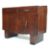 A 1930’s Art Deco oak sideboard credenza. The sideboard having a stub stage gallery back over  two drawers and a twin door cupboard with ebonised and chrome bar handles raised on block feet. Measures 97 H x 122 W x 52 D cm.