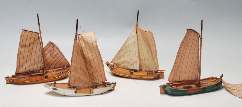 A collection of four late 20th century vintage scratch built toy sailing boats by Captains Peters - Holland to include Lemersteraak, Better, Hoogaars and more. Measures 17 cm tall.