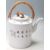 A 20th century Chinese republic period enamelled porcelain lidded teapot having poem famille rose pattern with hand weaved handle and Chinese characters to the body.