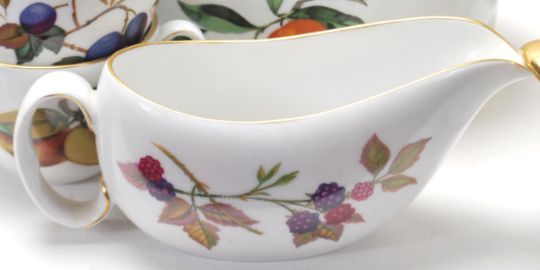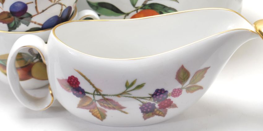 A quantity of vintage Royal Worcester Evesham pattern ceramic tablewares to include tureens, serving plates / dishes, bowls, cups and saucers, jug, condiments set, teapot,  etc.