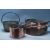 A good set of 19th century Victorian copper and steel graduating saucepans. Each with copper cylindrical pans with steel pierced handles. One being marked for Harrods of London, 2 with monogram for J.E.S. Together with another large copper and brass sauce pan with wide pan and heavy brass handle and a brass jam pan with handle being of cauldron form