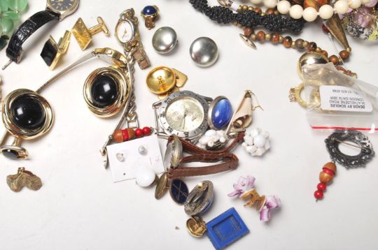 A large collection of costume jewellery from the mid to late 20th century. The collection comprises of bracelets, necklaces, watches, buttons, earrings, brooches and more.