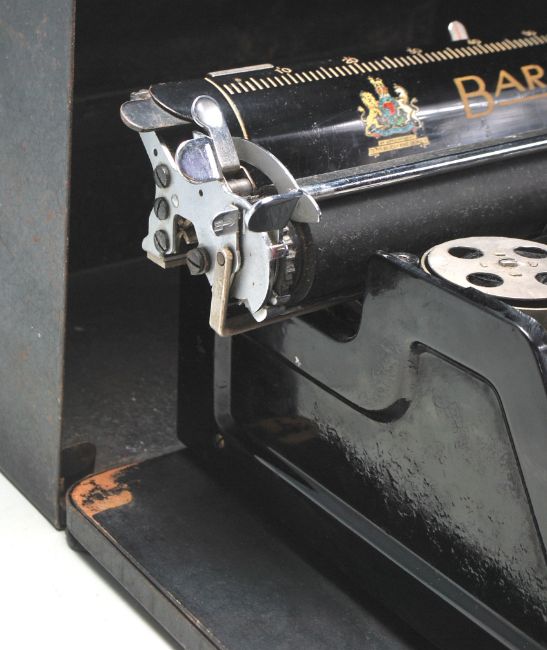 A retro vintage early 20th Century Bar-Let Model two typewriter. Makers stamp to the reverse reads Made in Nottingham by Bar Lock 1925 Company Proprietors John Jardine Ltd.  Complete with the original metal carry case.