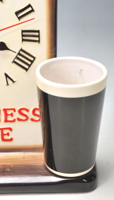A vintage 20th century Guinness Toucan Clock / Guinness Time shop advertising clock having a colourful toucan to the left, Guinness glass to the right and a battery operated clock to the centre. Makers label to the underside.