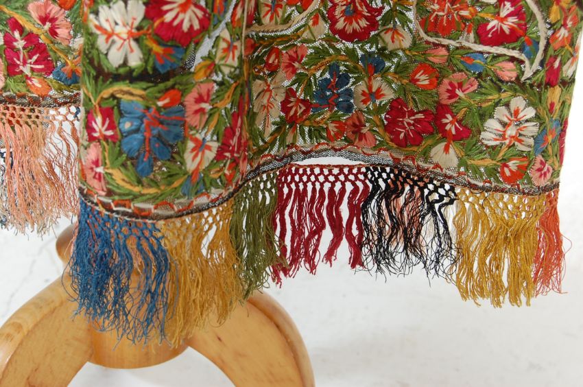 Textiles - A highly decorative vintage 20th century Indian shawl / throw having fine polychrome embroidery of lotus and stylised flowers on a black ground.