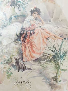 ARTISTS RE-SALE RIGHT. Buyers of the re-sold art of living artists will be charged the royalty where applicable. Currently this is 4% on any item sold at 1000 Euros or over, diminishing about 50,000 Euros. VAT is not applicable. Further details can be obtained from our office.