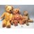 A group of three vintage late 20th century teddy bears. A brown Steiff teddy bear with tag to the left ear and glass eyes along with other two light cream teddy bears with no makers marks.